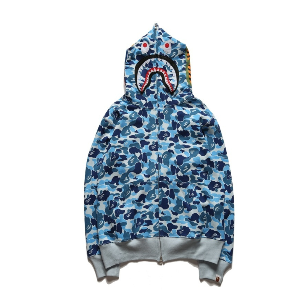 BAPE Shark Head Camouflage Full Zip Hoodie Blue