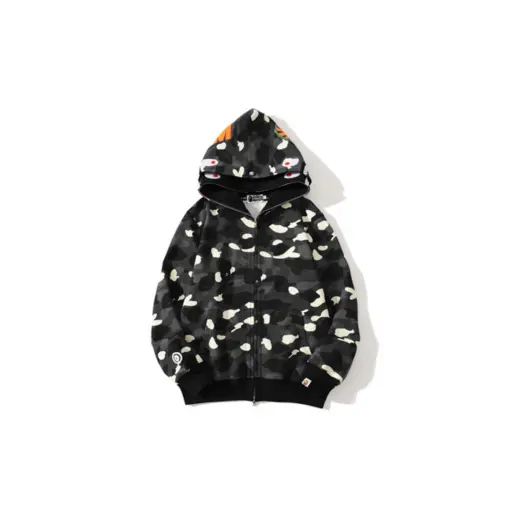 BAPE Shark Head Glow In The Dark Polka Dot Camouflage Full Zip Hoodie Black