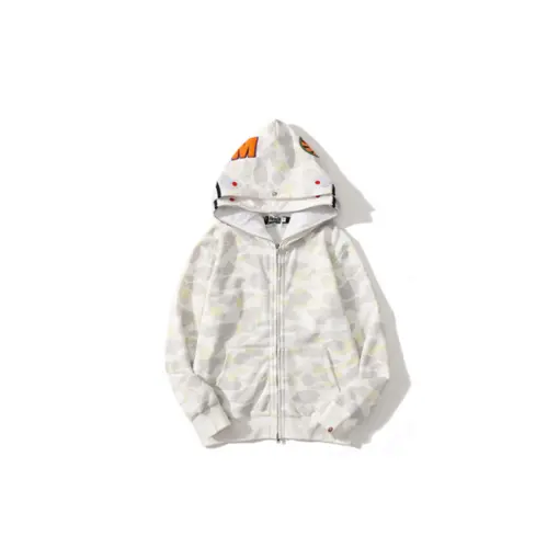 BAPE Shark Head Glow In The Dark Polka Dot Camouflage Full Zip Hoodie White