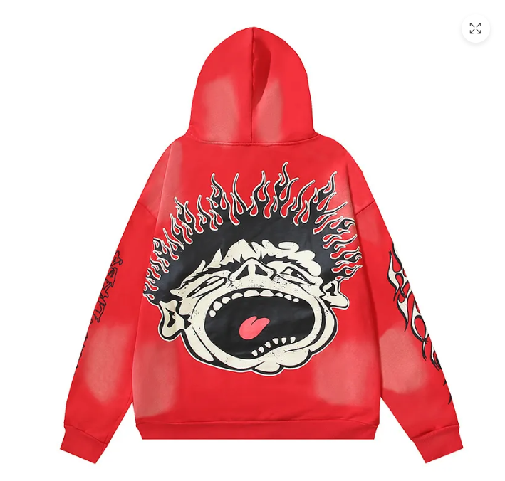 Hellstar Hell Red Flare Star Retro Washed Distressed Print Hoodie Red