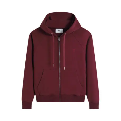 Ami Paris Ami De Coeur Zip-Up Hoodie Maroon