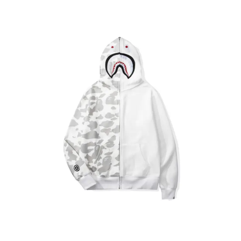 BAPE Shark Hooded Hoodie Duo Colour White And Gray Dot