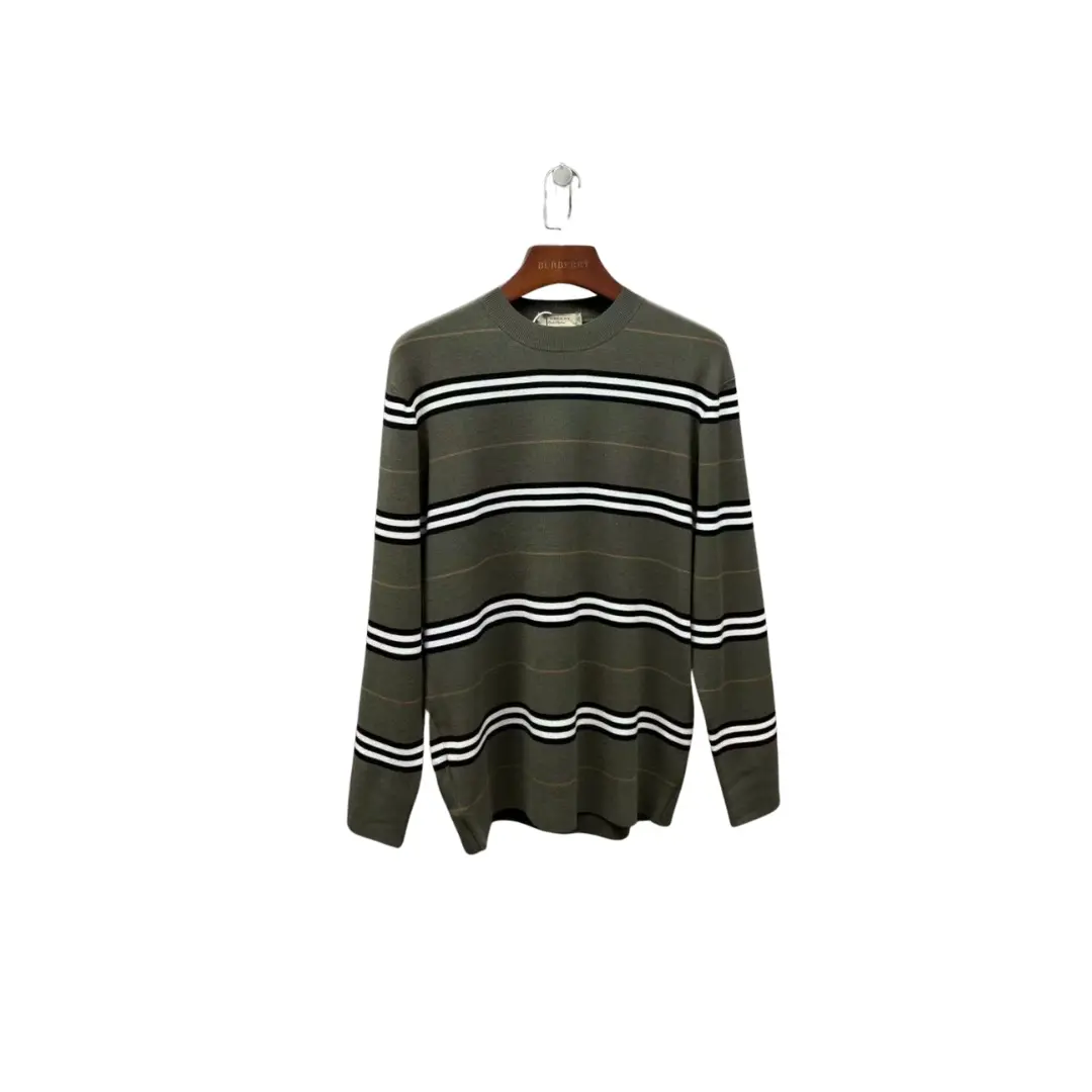 Burberry Sweater Olive Green With White Stripes