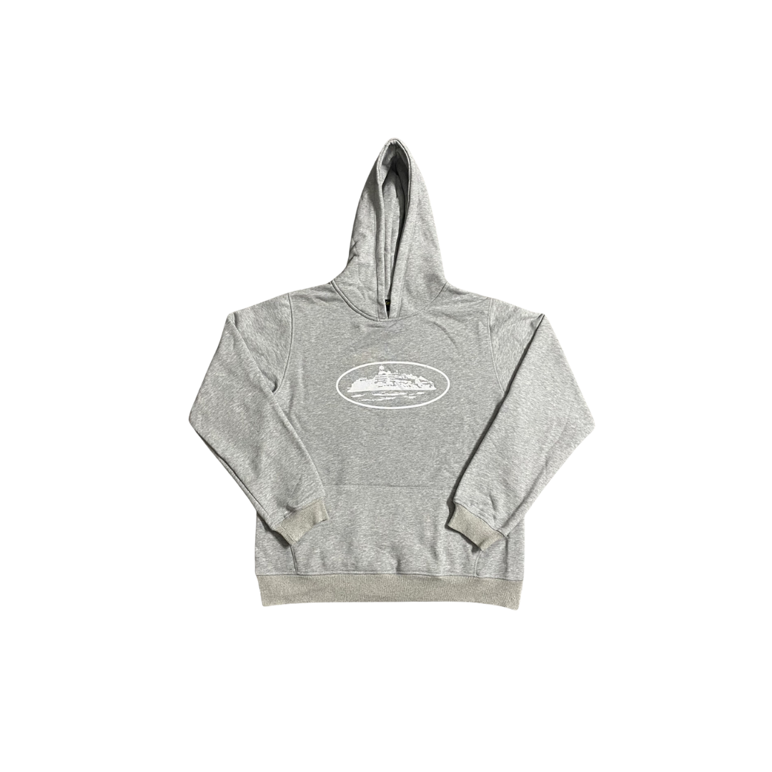 Corteiz Alcatraz Hoodie Gray With White Monogram